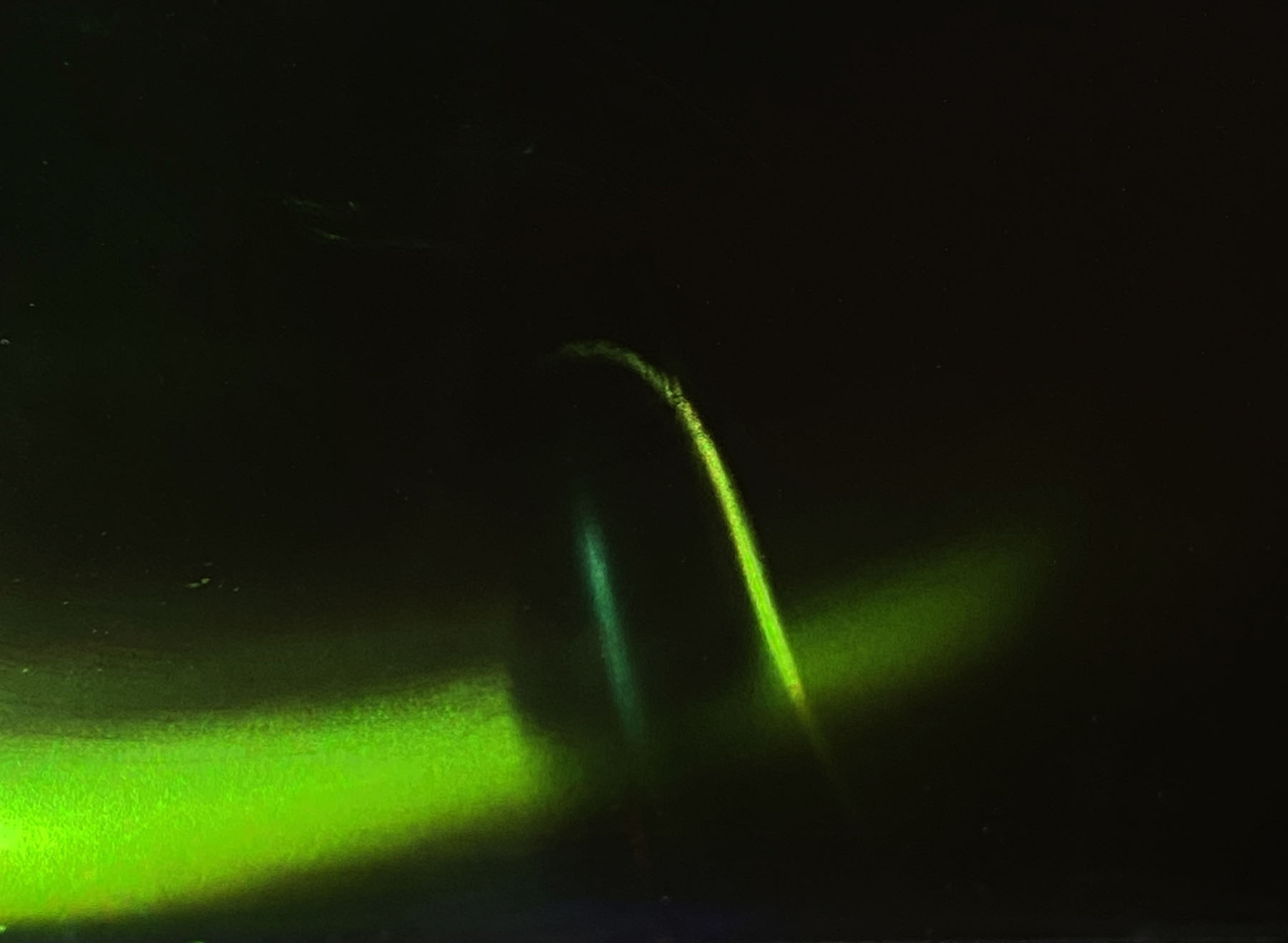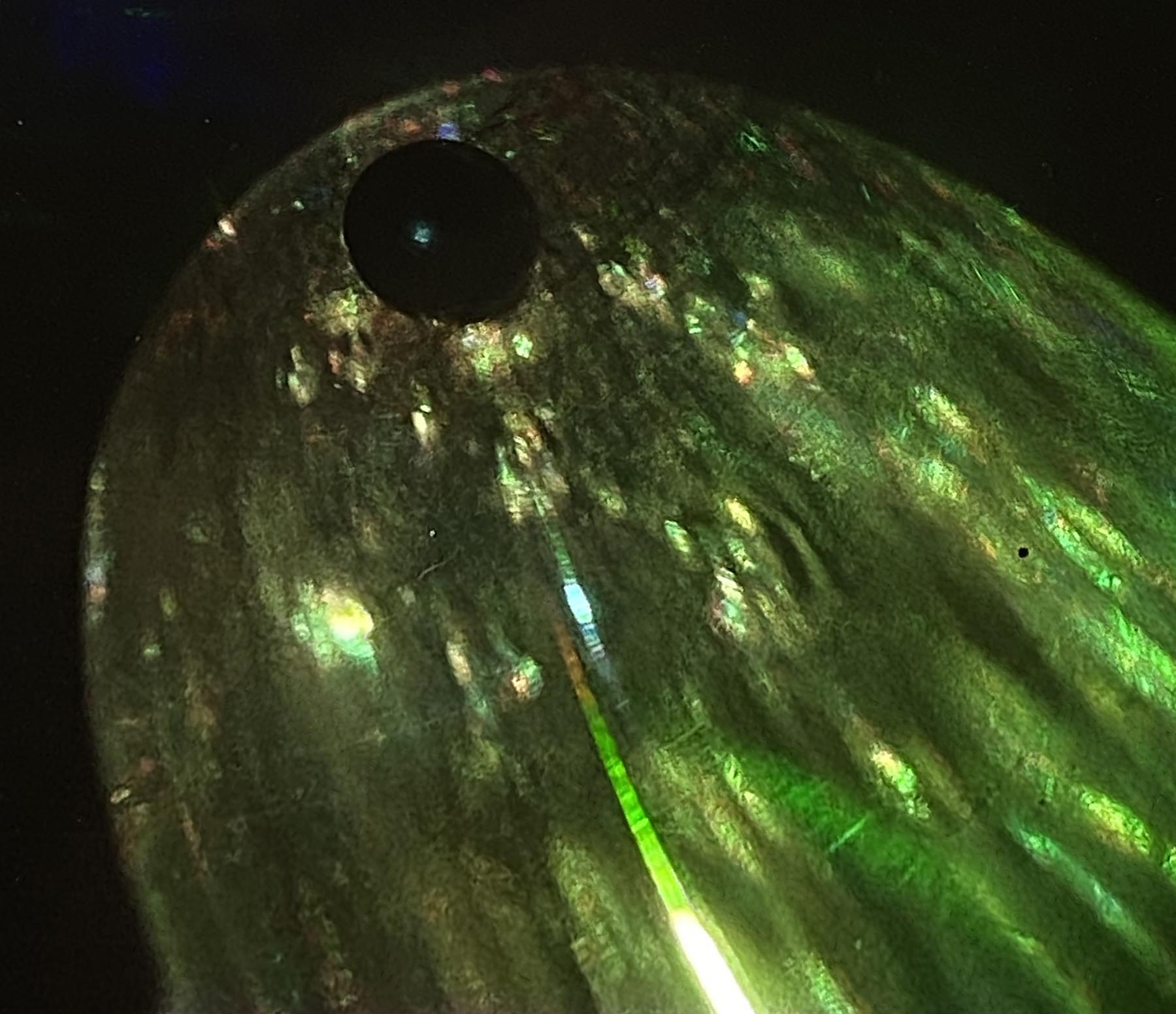 15 x 25 cm reflection hologram. Registered with a 3 color laser device on photopolymer. Surprising “near achromatic” result.